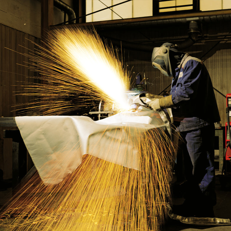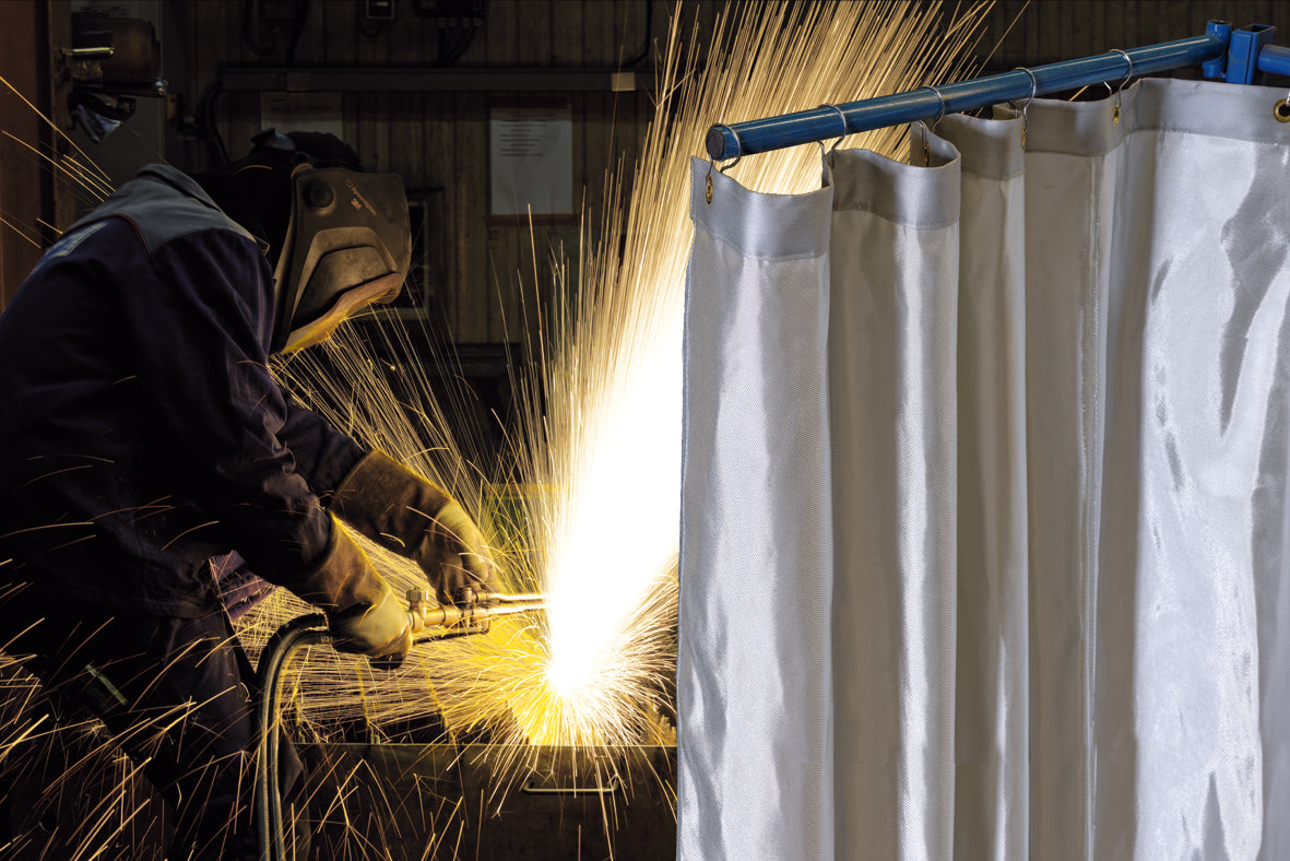 Spritzerschutzdecken verhindern Entstehungsbrände durch Schweiß- oder Flexarbeiten.